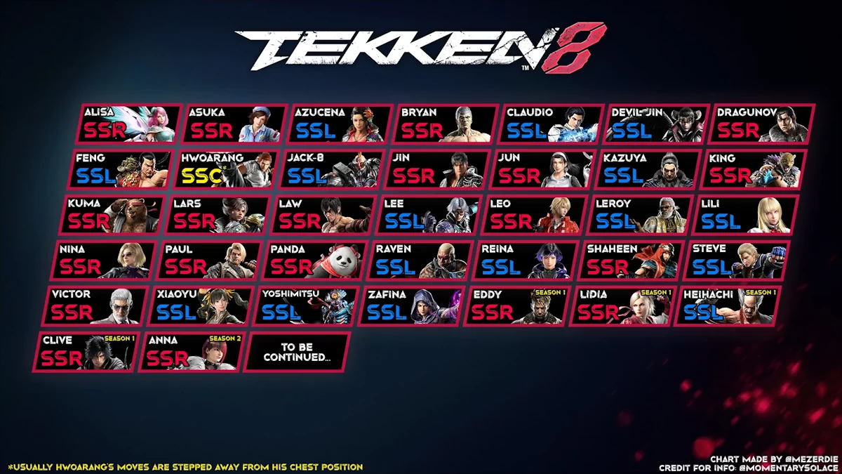A website with a collection of visual cheat sheets for characters
